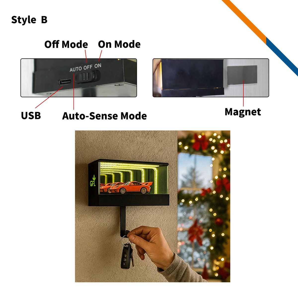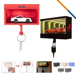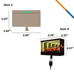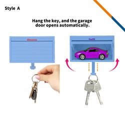 LairLock Car Garage Key Holder blends practicality with a fun, whimsical touch. Made from premium ABS plastic, this innovative key organizer includes an interactive garage door. When you hang your keys, the garage door will open automatically, or the garage will light up, adding a playful touch to your entryway and ensuring your keys are always within reach. You can also place small decorative items like car toys in the garage-shaped compartment of this key holder (Decorative items not included). Beyond its practical storage uses, this wall key holder brings a distinctive touch to your space, making it a stylish garage-inspired wall accent perfect for entryways of all styles. Perfect for garage, home, and office. Style A comes with an opening door. Style B features a lighting function, powered by 600 mAh battery and recharged via Type-C port (charging cable included). Standard with style A. Premium with Style B is available at an additional charge.