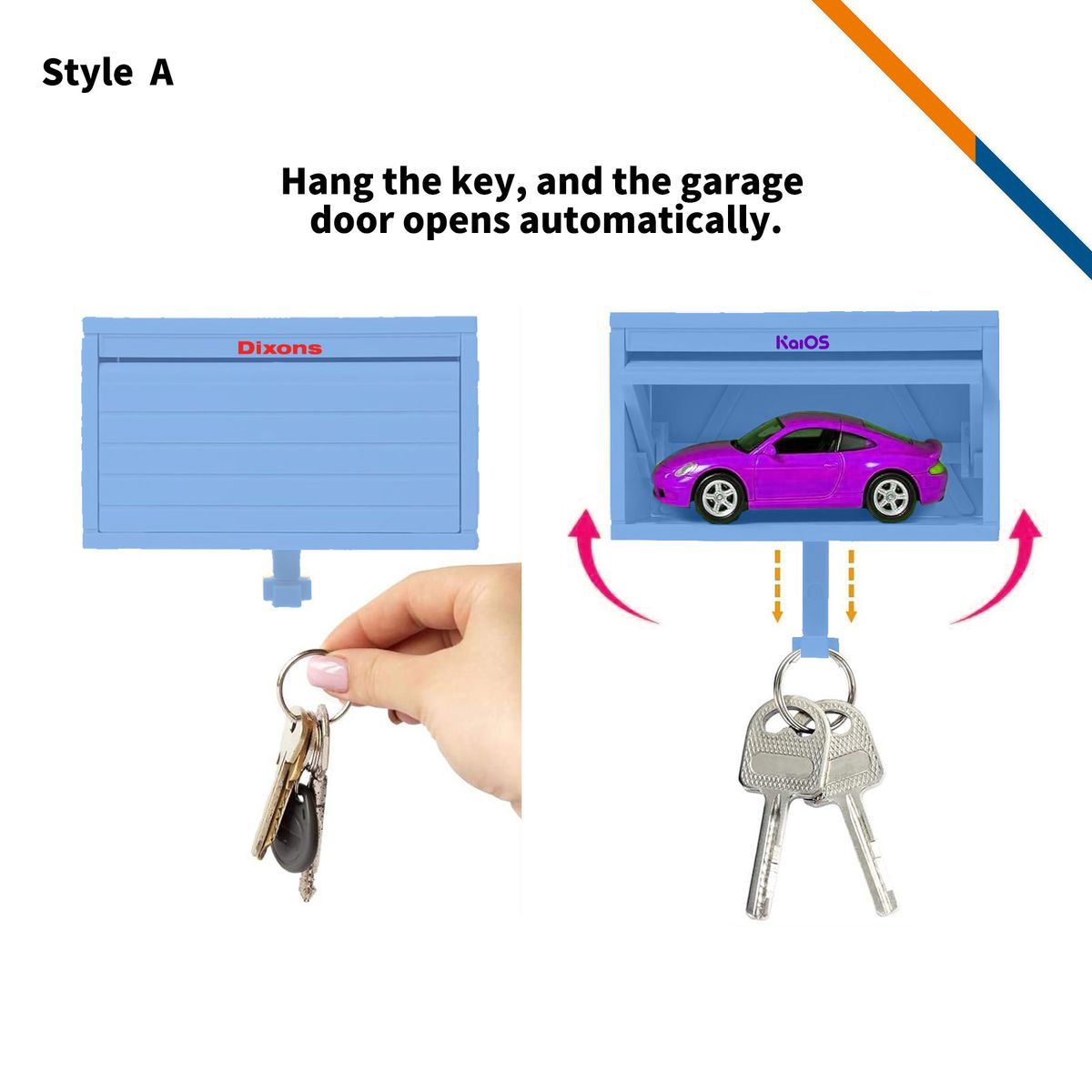 • Made from premium ABS plastic, this innovative key organizer includes an interactive garage door.